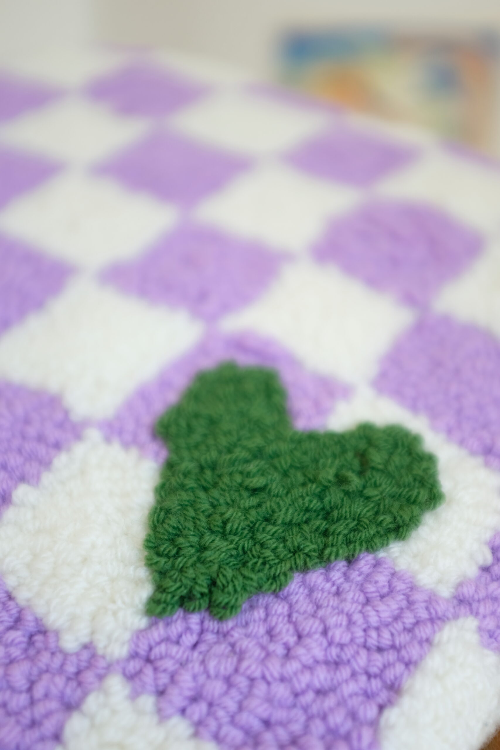Damier mauve et blanc, petit cœur vert